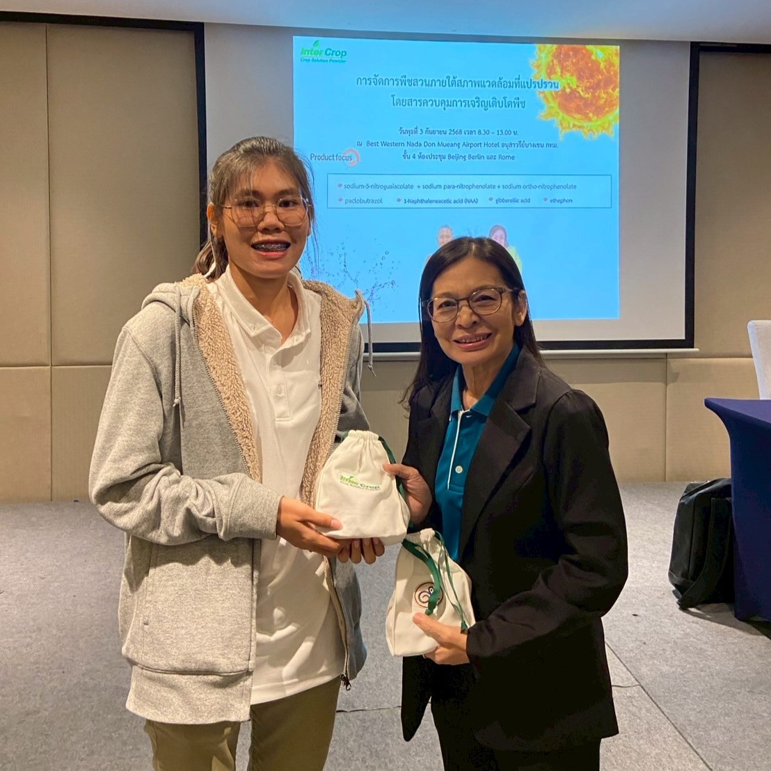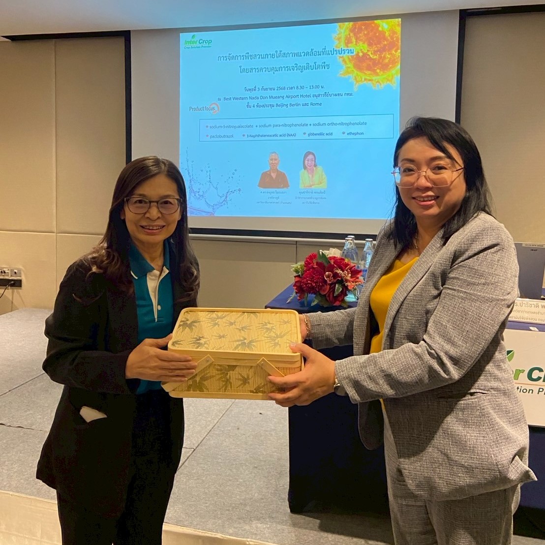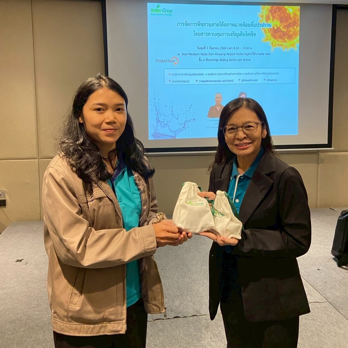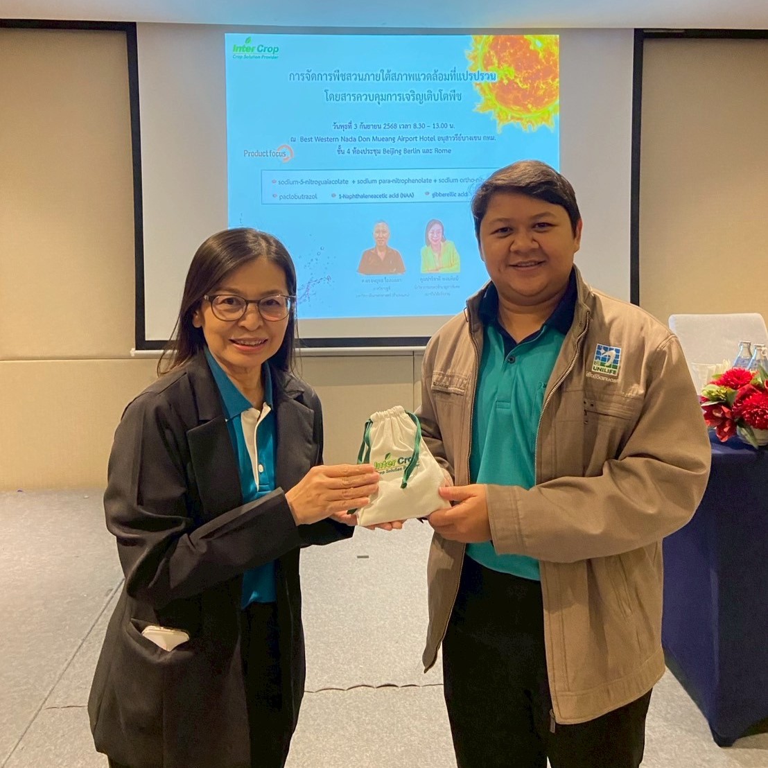 As climate volatility increasingly impacts global agriculture, projections indicate that within the next five years, global temperatures are likely to break historical records. This trend poses significant challenges for farmers, requiring them to adopt new approaches to manage crops under extreme and unpredictable conditions. In response, Inter Crop Group organized a seminar on “Managing Horticultural Crops amid Environmental Crises with Plant Growth Regulators” for its business partners on September 3, 2025, at Best Western Nada Don Mueang Airport Hotel. The seminar featured three distinguished speakers, aiming to equip growers of key horticultural crops—such as durian and mango—with practical knowledge and techniques to maintain yield and crop resilience, even under unavoidable environmental stress, through the proper, timely, and effective use of Plant Growth Regulators (PGRs).